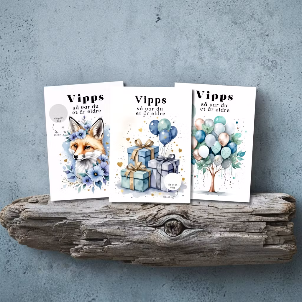3stk Vipps Bursdagskort
