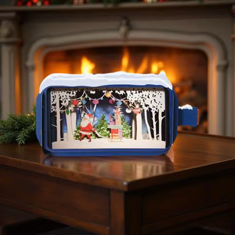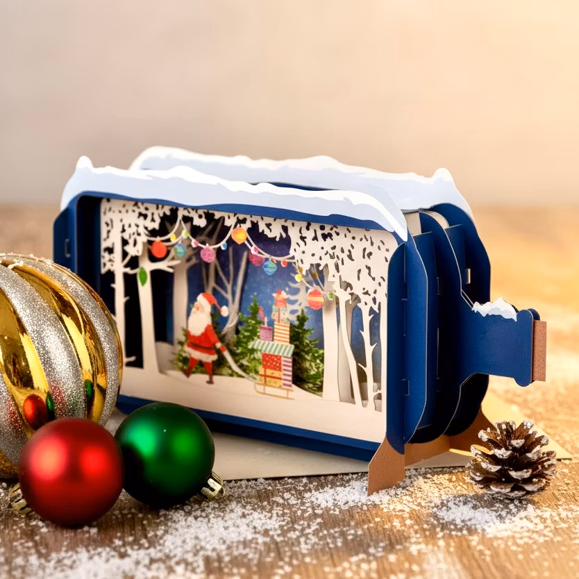 Et sjarmerende 3D-kort med selveste julenissen – en perfekt julehilsen for både store og små.