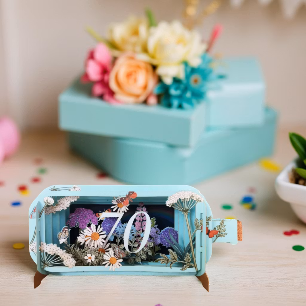 Et vakkert utformet kort som gir ekstra glans til 70-årsdagen. En spesiell hilsen til en spesiell anledning.