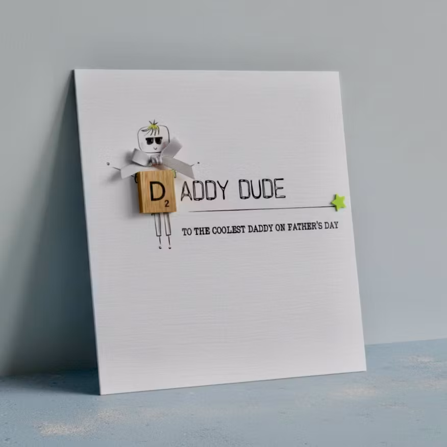 Bexy Boo Greeting Card - "DADDY DUDE" 39,- 19,- På lager Legg i handlekurv Del Informasjon DADDY DUDE CardDobbeltsidig kort Blank innside.15.5cm x 15.5cm stort kort.