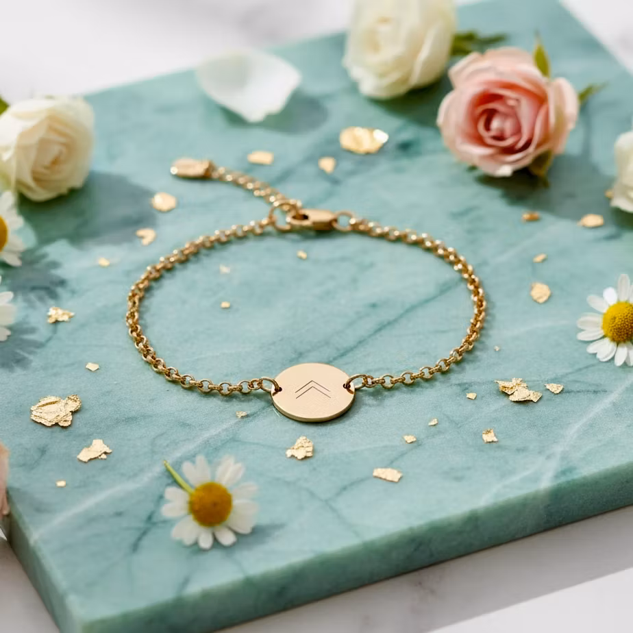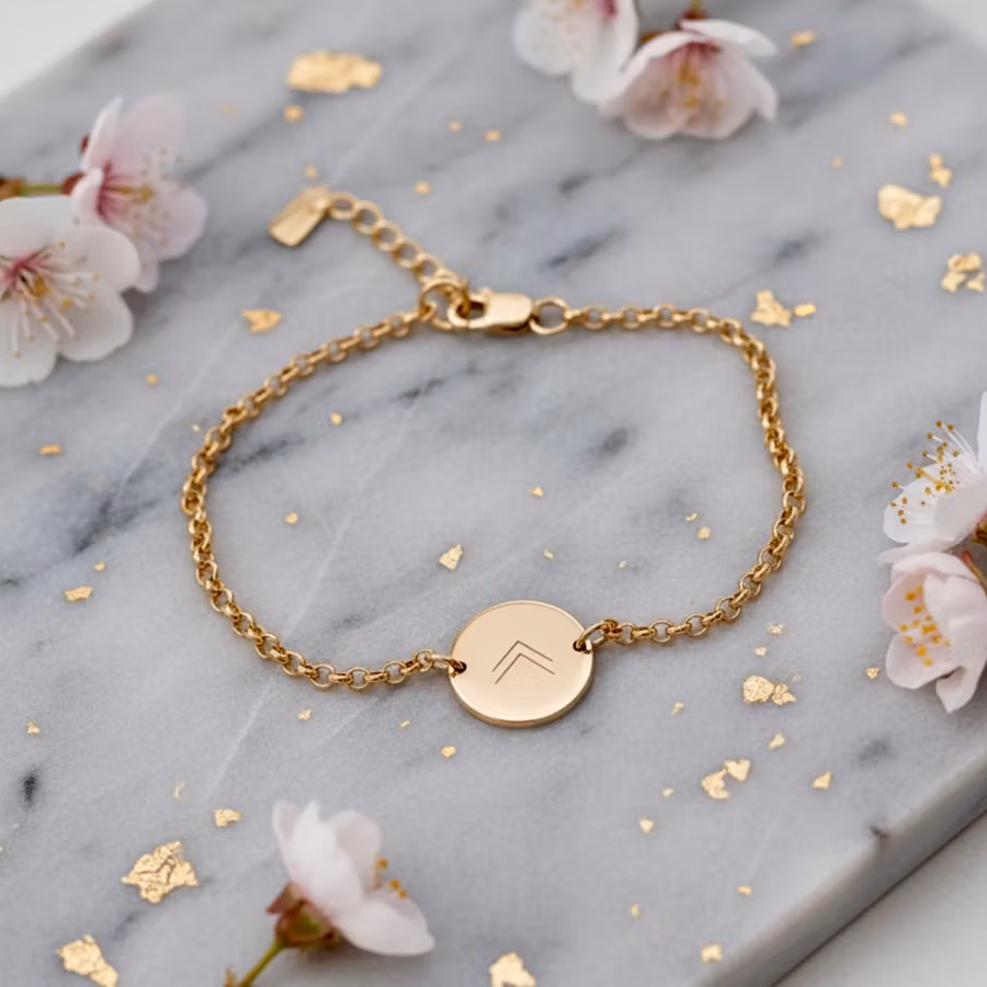 Et nydelig 14k gullfylt armbånd med "Follow your dream" symbol inngravert på anhenget.