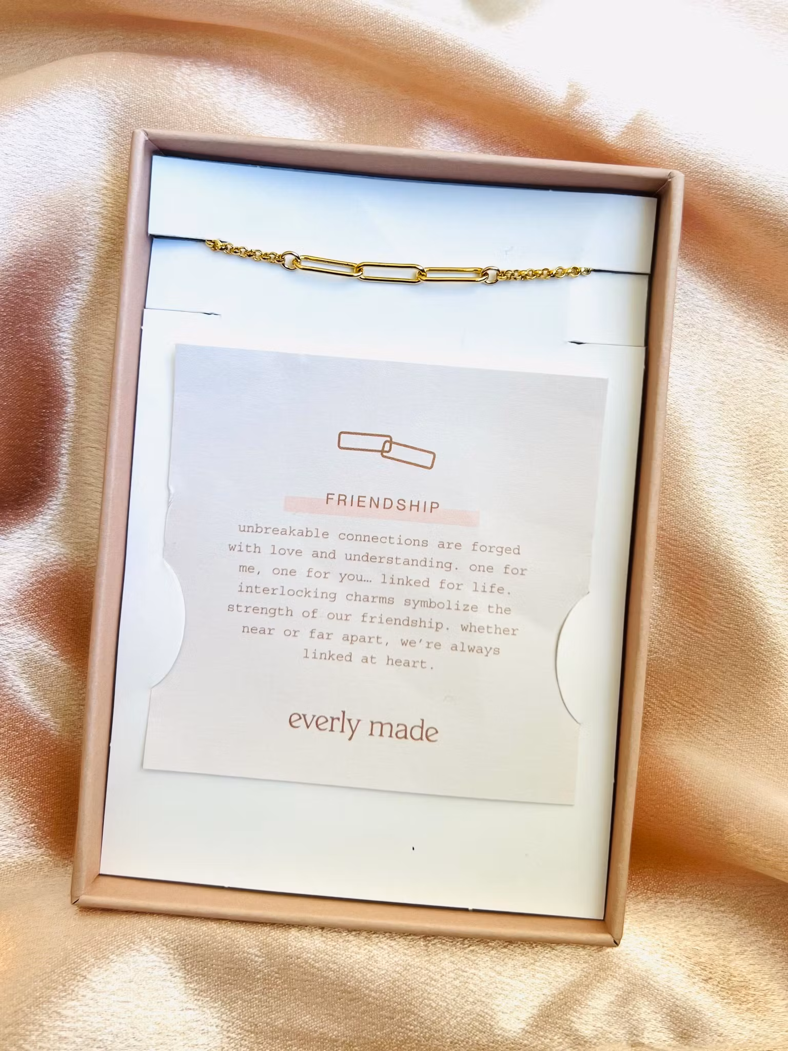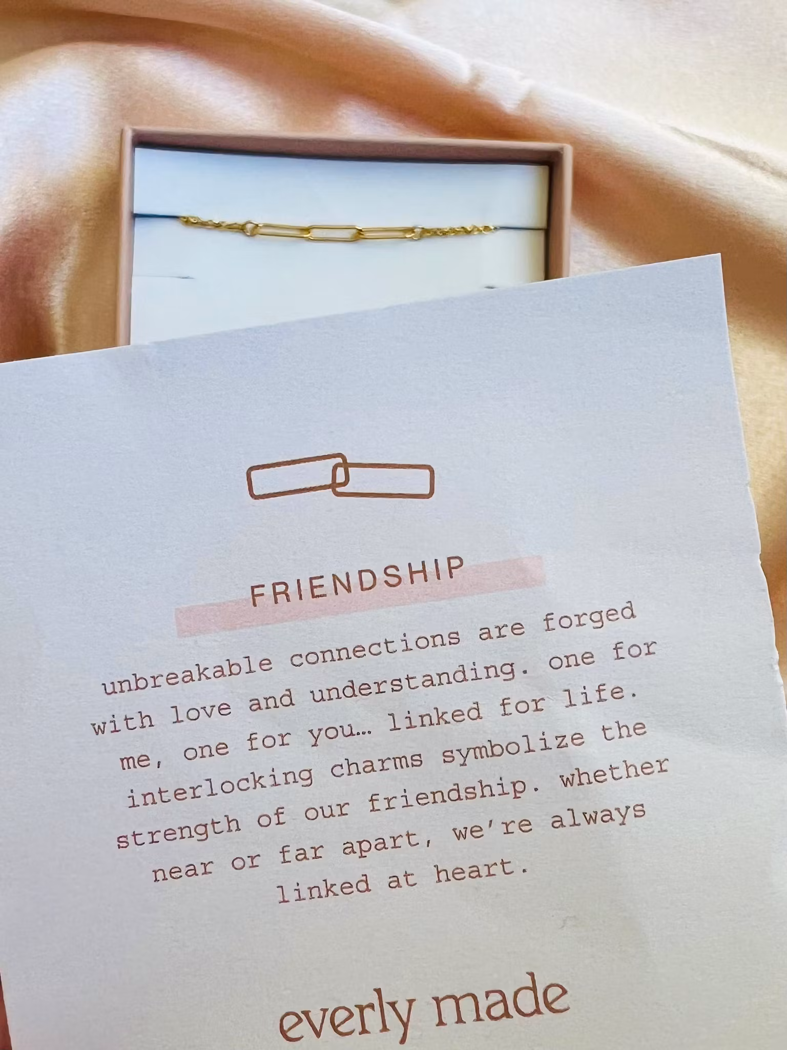 Unbreakable connections are forged with love and understanding. one for me, one for you… linked for life. interlocking charms symbolize the strength of our friendship. whether near or far apart, we're always linked at heart