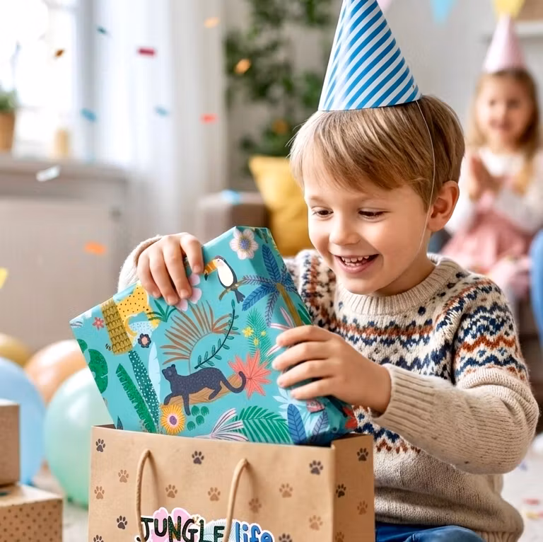 Skap en eventyrlig stemning rundt gaven med vÄrt Jungle Life-sett.