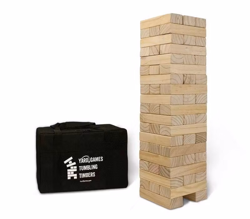 The Giant Tumbling Timbers game is great to take outdoors, to group events, parties, camping, and more.