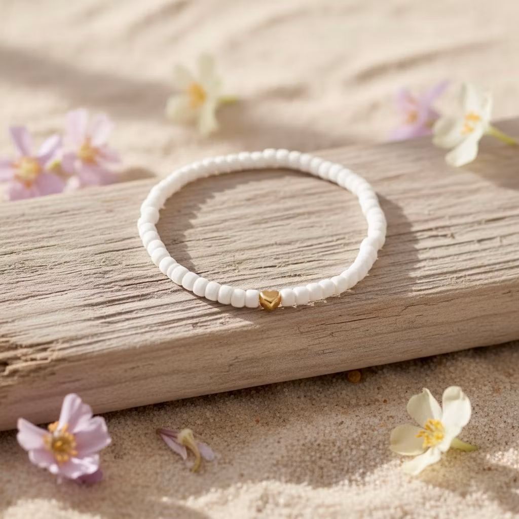 Glass Beads Stretch Bracelet - Hvit 39,- På lager Legg i handlekurv Del Informasjon Nydelig enkelt elastisk armbånd laget av med glass perler. Perfekte både alene og lag-på-lag med andre armbånd