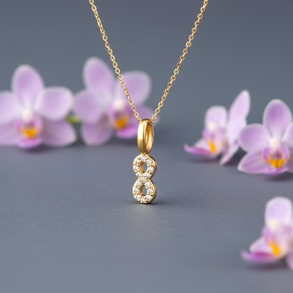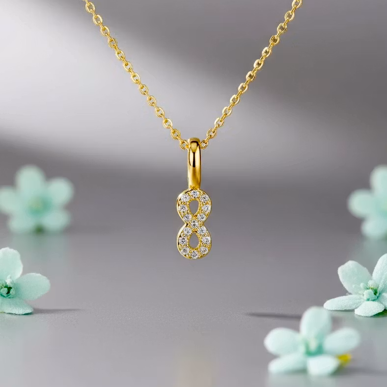 La dette vakre gullkjedet bli et symbol på kjærlighet, vennskap eller uendelige muligheter. Det elegante infinity-anhenget er belagt med glitrende detaljer som gir et tidløst og moderne uttrykk. Perfekt både til hverdags og fest – alene eller i lag med andre smykker.