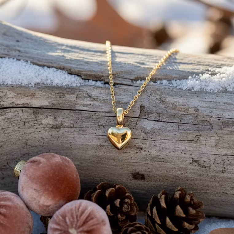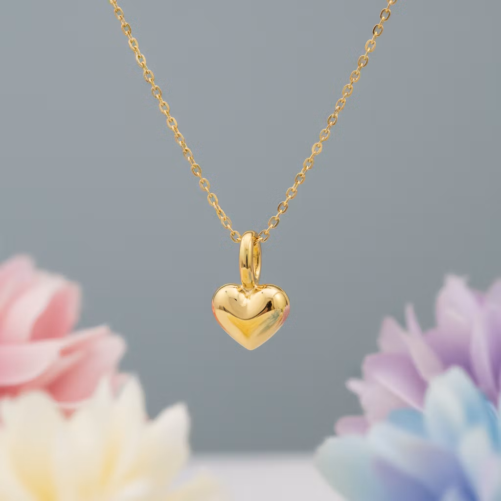 Et klassisk og tidløst smykke som lar kjærligheten skinne. Dette nydelige gullkjedet med et mykt, avrundet “puffed heart”-anheng gir et elegant og varmt uttrykk – perfekt både som gave og som et personlig smykke du bruker hver dag. Den speilblanke overflaten reflekterer lys på en subtil og vakker måte.