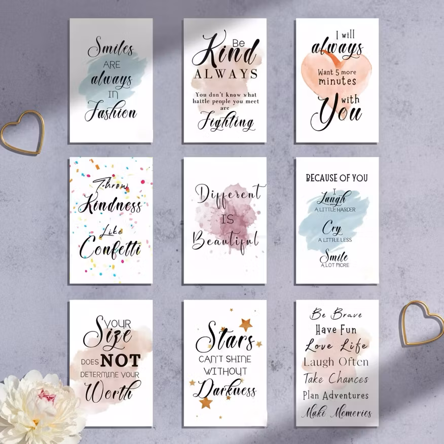 Bruk dem som små gaver, heng dem opp som daglig motivasjon, eller skriv en personlig hilsen på den blanke baksiden for å gjøre kortene ekstra personlige.