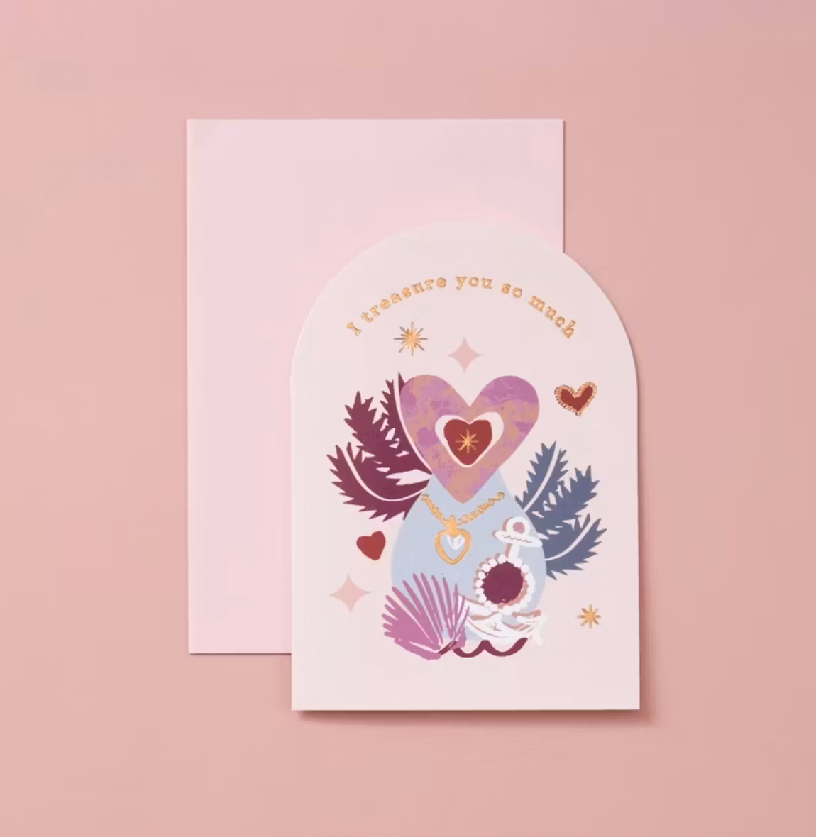 Type and Story - I treasure you so much 49,- På lager Legg i handlekurv Del Informasjon Nydelig kort i dus rosa med tekst 'I treasure you so much' A6 størrelse. Printet på høykvalitets papir. Produsert i England.