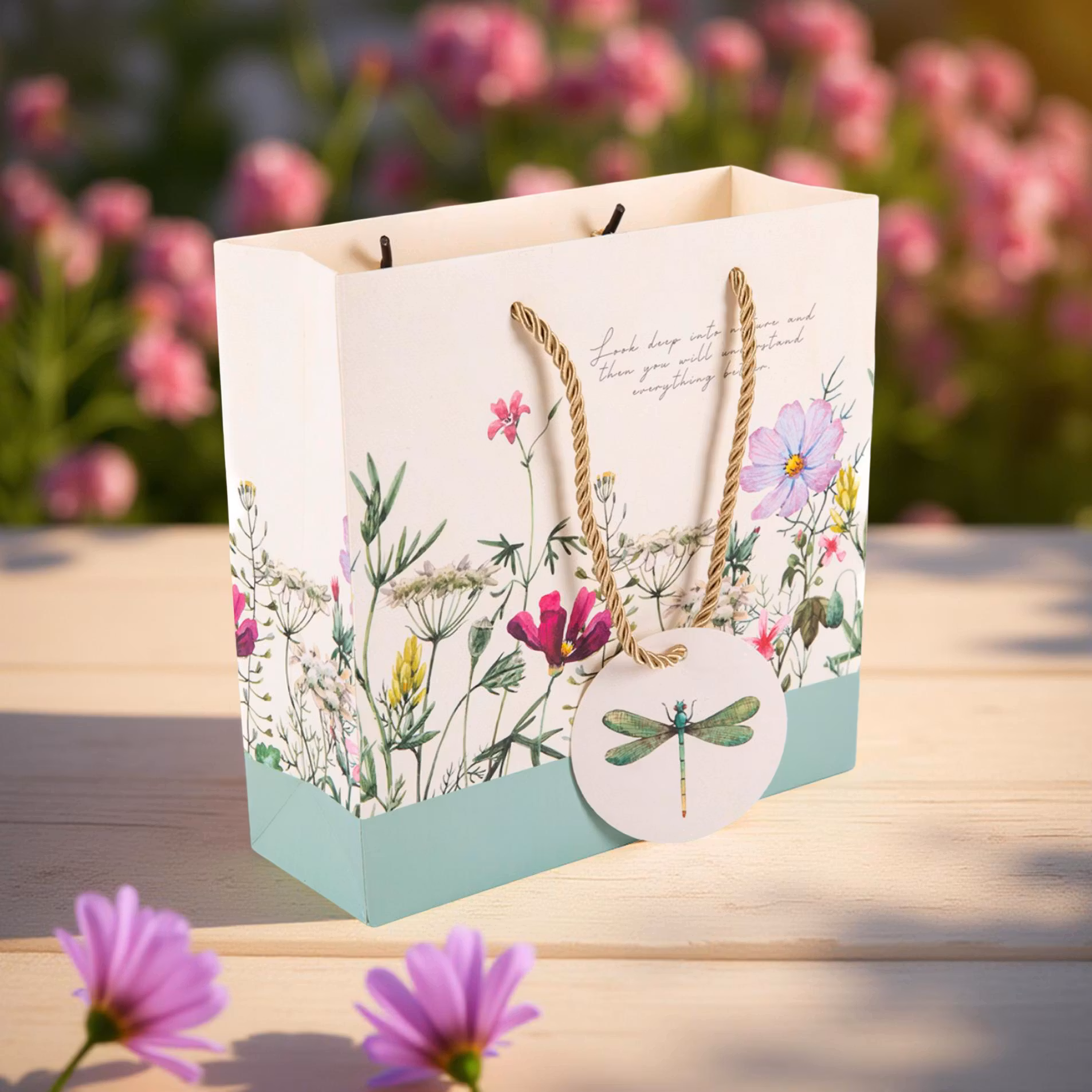 En gavepose som oser av naturlig eleganse . Friske og livlige gaveposer med blomster i glade farger 🌼🌺.