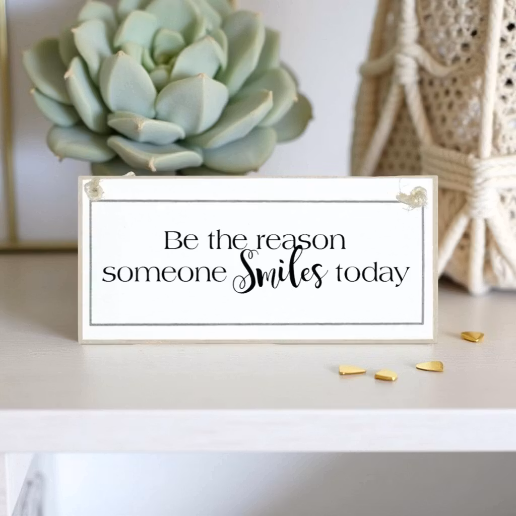 Crafty Clara Wooden Sign - "Be the reason someone smiles today" 99,- På lager Legg i handlekurv Del Informasjon "Be the reason someone smiles today"Handmade Shabby Chic Sign. Approx' 20cm x 9.5cm and 12mm thick Recommended for indooruseMade in United Kingdom