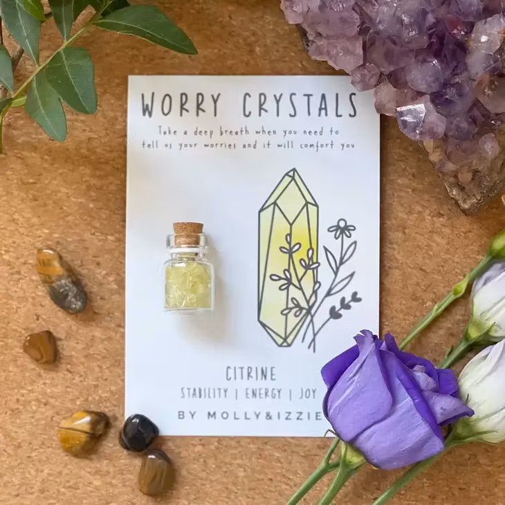 Kortet med den nydelige lille krukken blir en flott gave. Krystallene er nøye utvalgt for sitt formål. Stabilitet - energi - glede