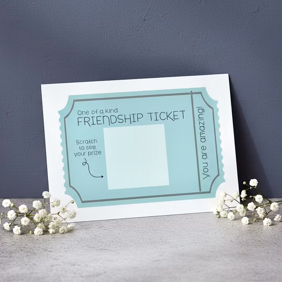 Friendship Ticket kort er perfekt når du skal gi en venn en opplevelse, gavekort eller annen gave du ikke har fysisk til å pakke inn.