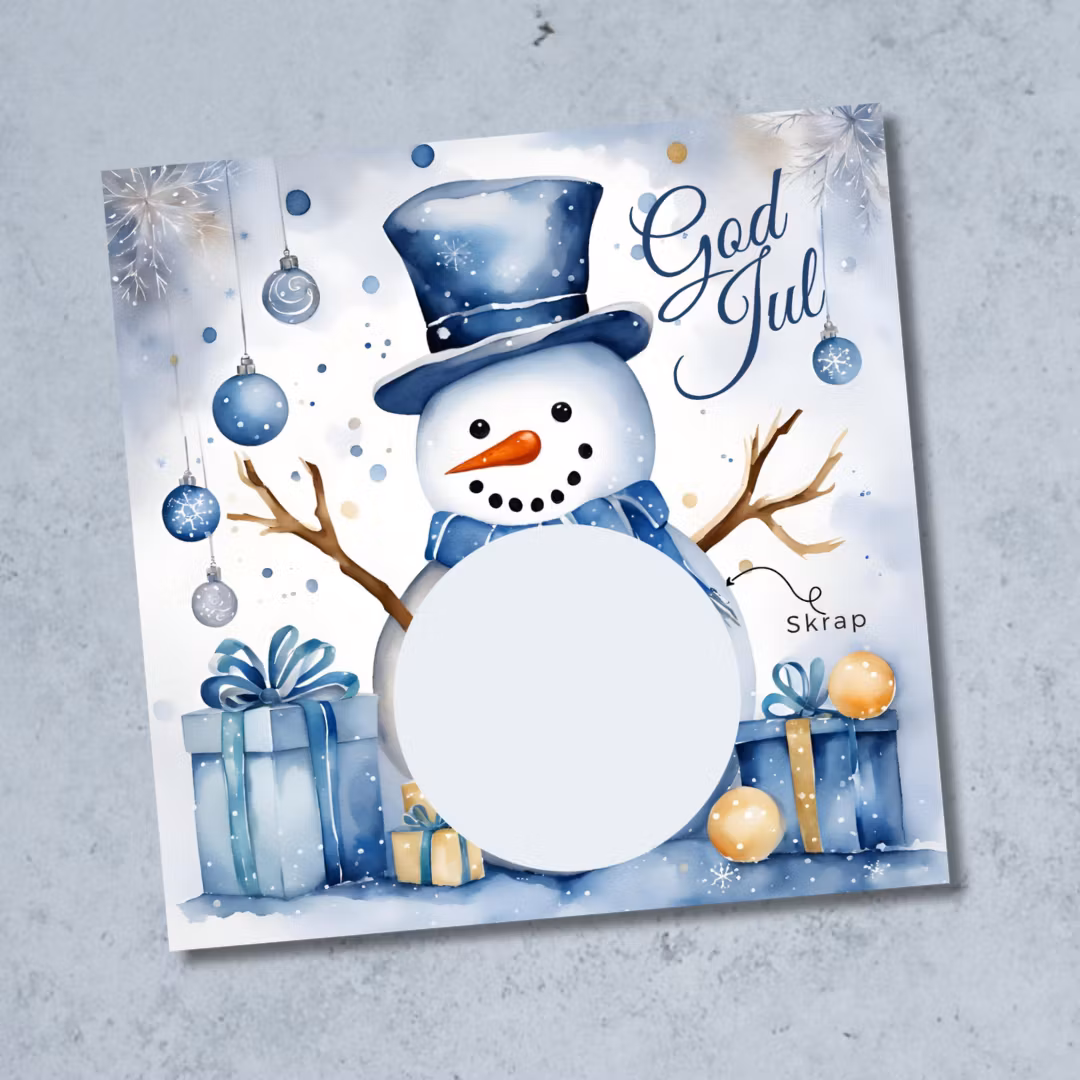 Du skriver det som skal være gaven i det runde feltet og klistrer det medfølgende skrapeklistremerke over.
