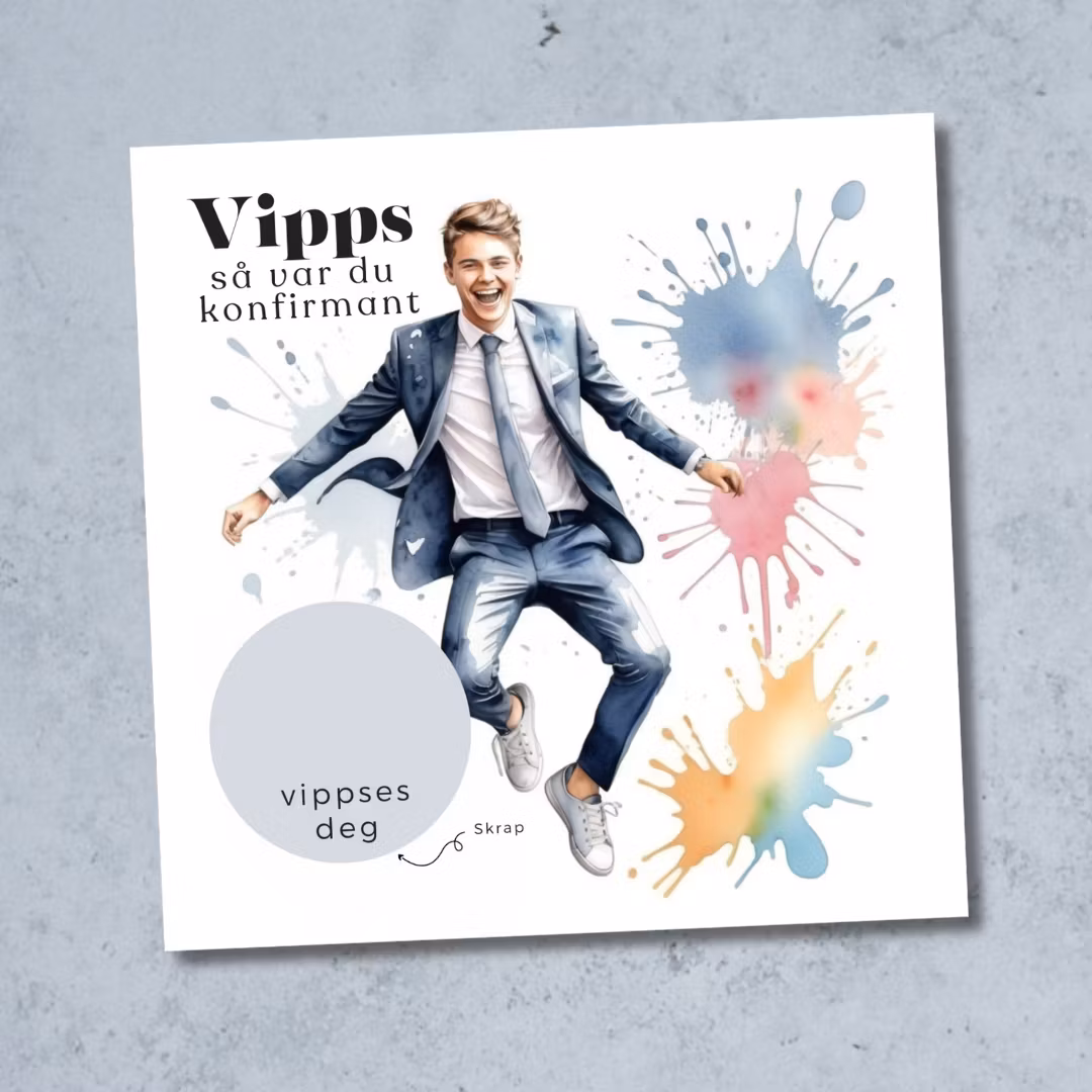 Dette stilrene konfirmasjonskortet gjør pengegaven via Vipps både personlig og spennende.