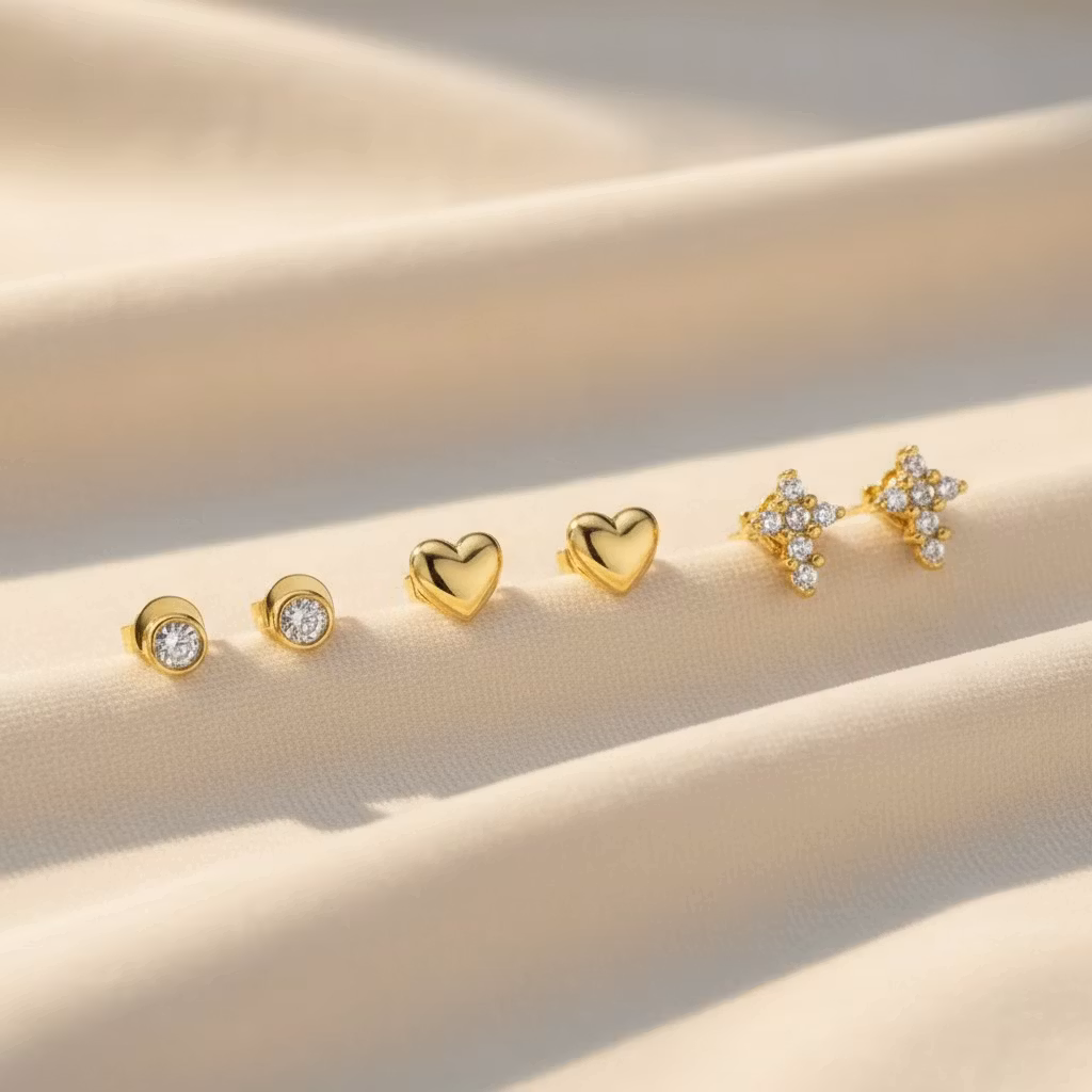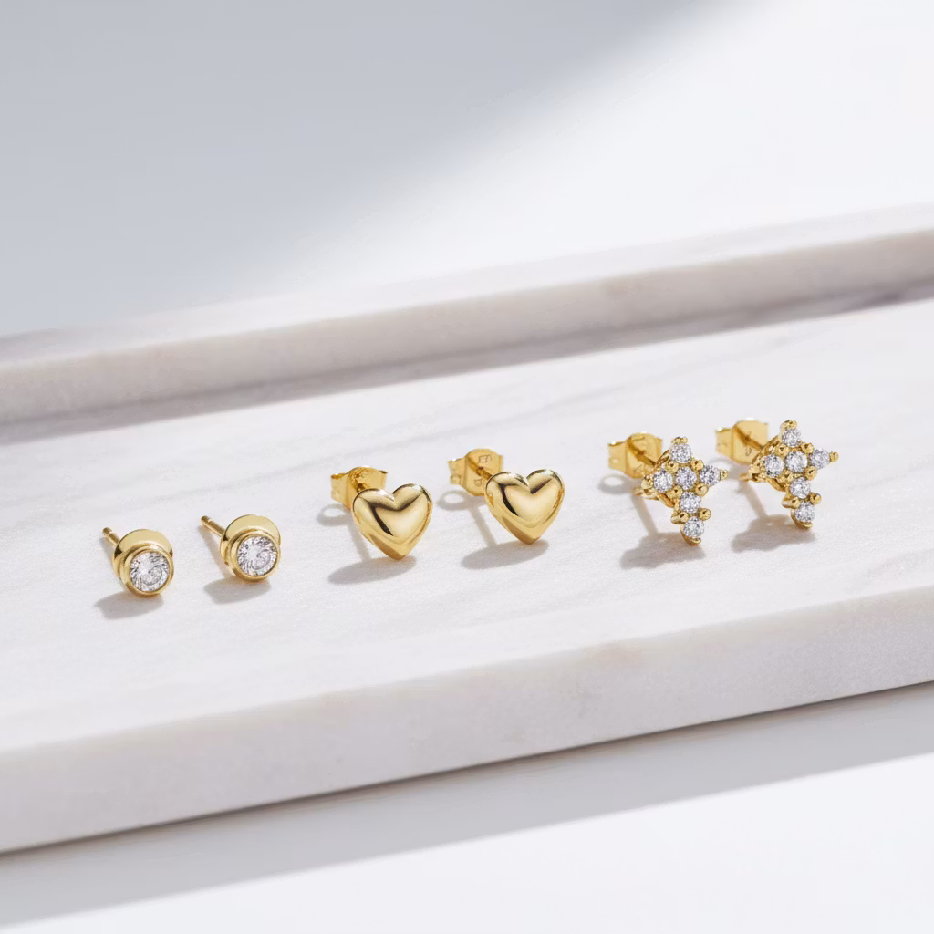 ✨ Øredobbsett – 3 Par: Glans, Hjerte & Stjerneskinn