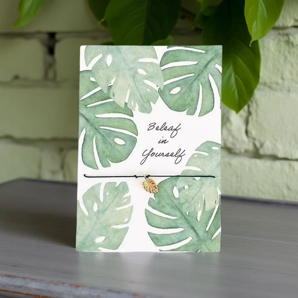 Cotton and Silk string with 18K gold-plated leaf pendant.