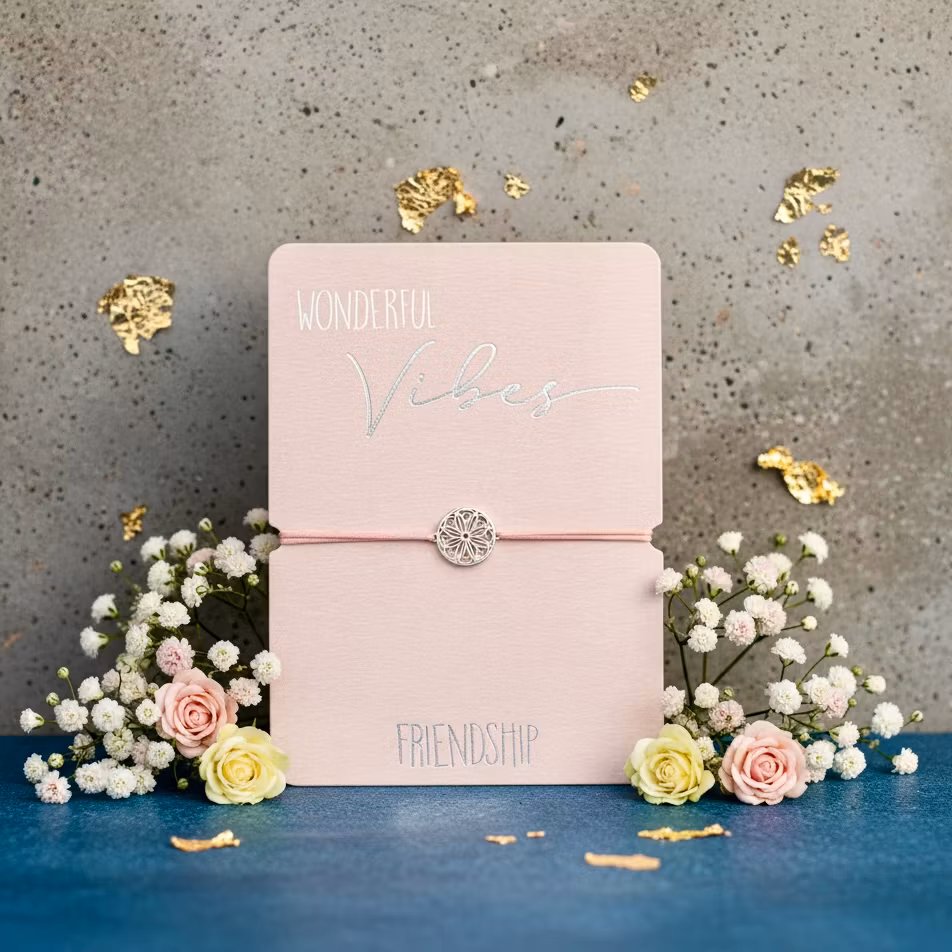 Crystals HCA Jewellery - Wonderful Vibes Bracelet - Friendship 99,- På lager Legg i handlekurv Del Informasjon Et perfekt armbånd å gi bort som en vennegave.Symbol: Mandala of friendshipFarge på armbåndet: RosaJusterbar lengde