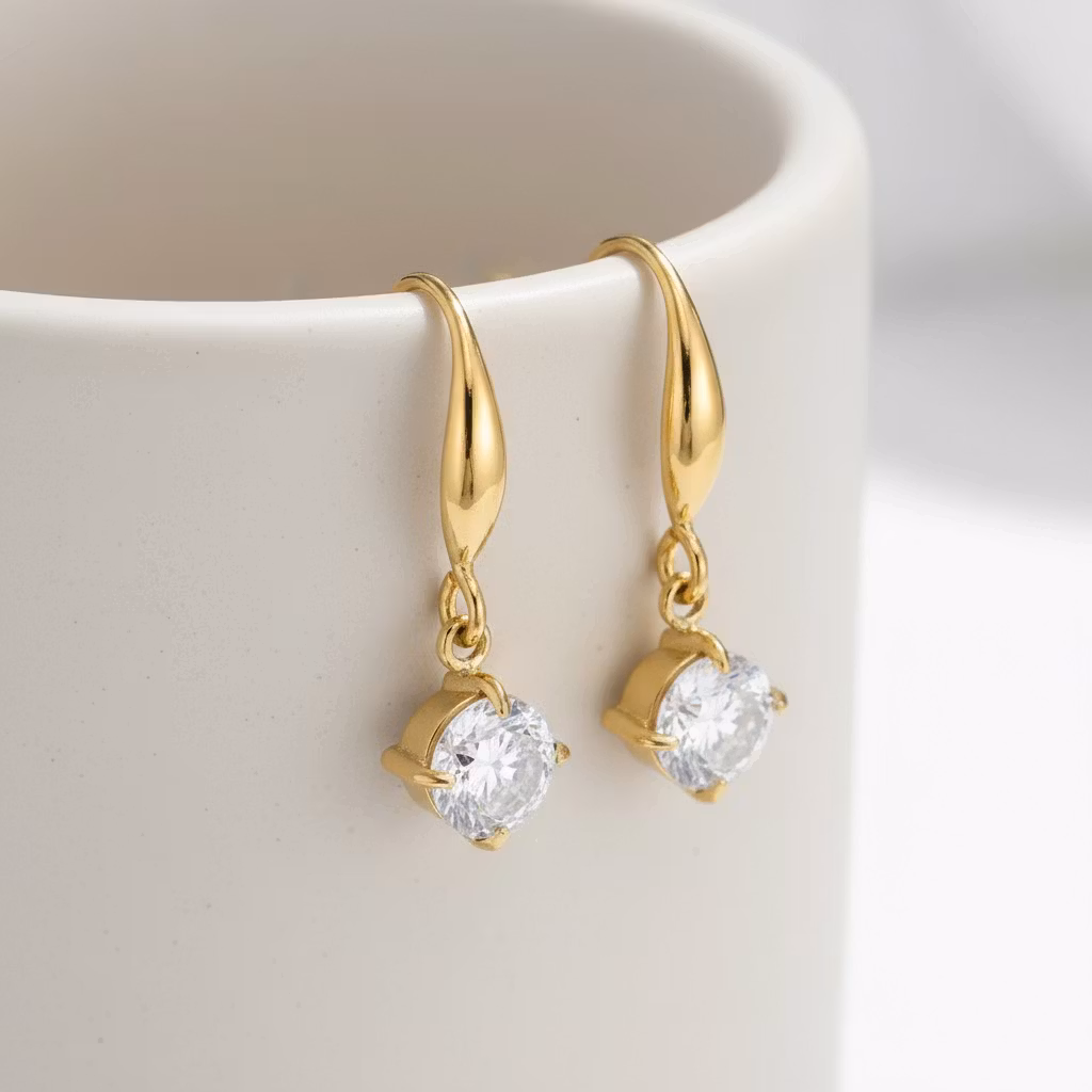 ✨ Gullfargede Drop-øredobber med Klar Stein – Elegant og Enkel Luksus
