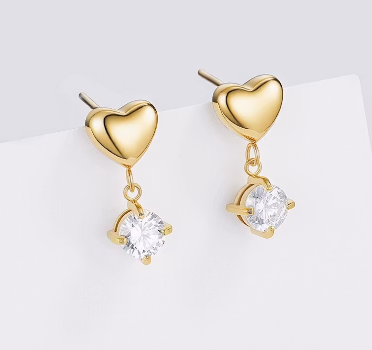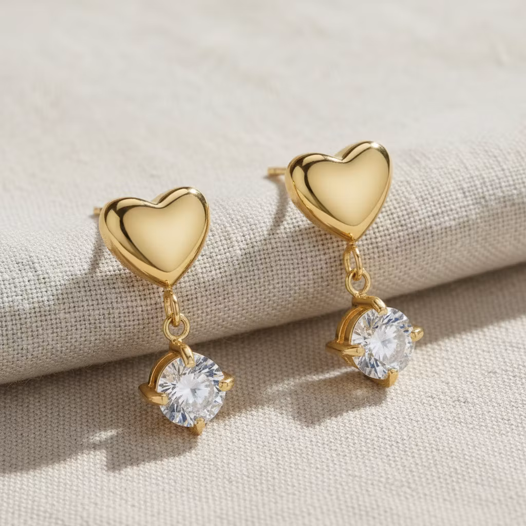 💛 Hjerte-øredobber med Glitrende Stein – Feminint og Fint