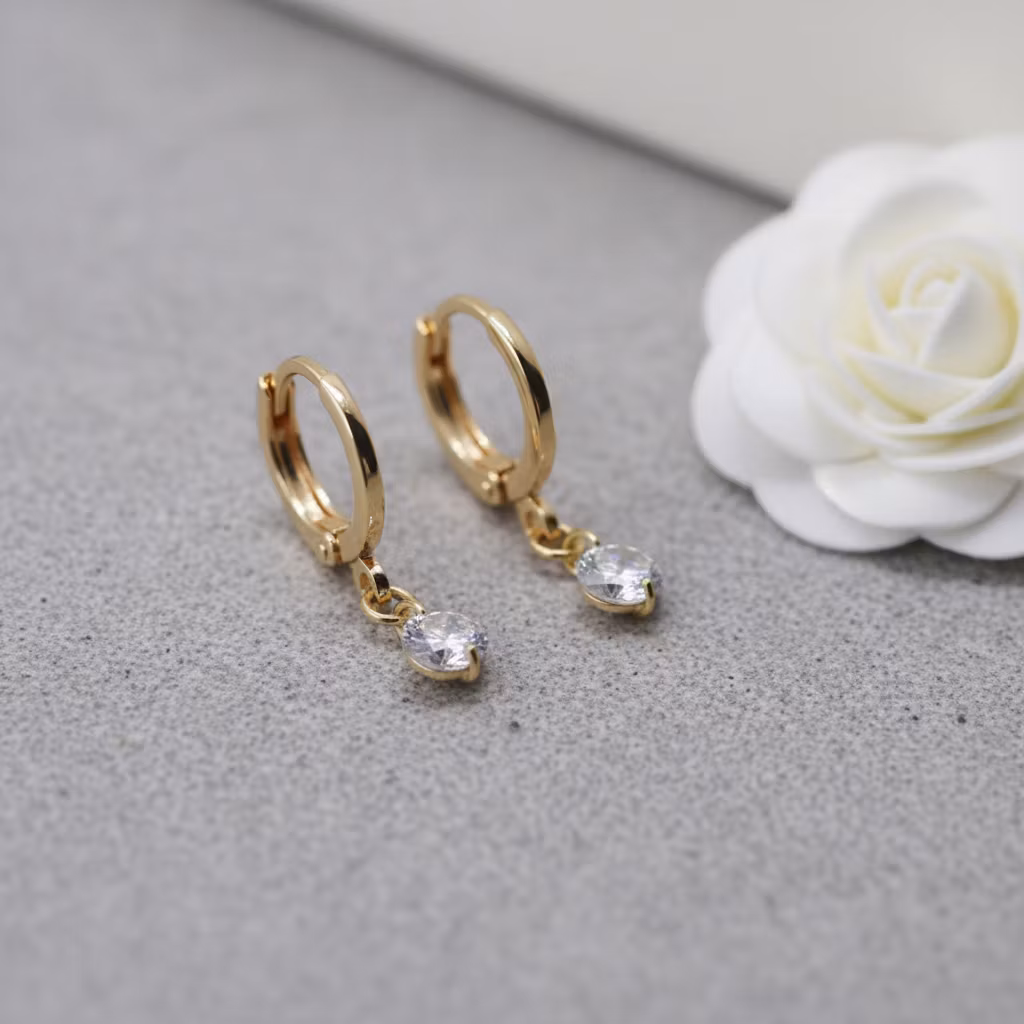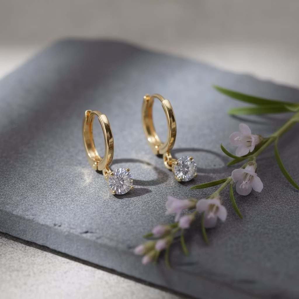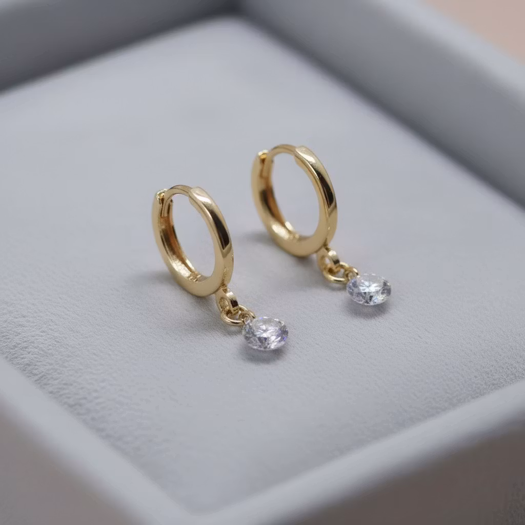 Disse lekre gulløredobbene har 5 mm cubic Zircona stener.