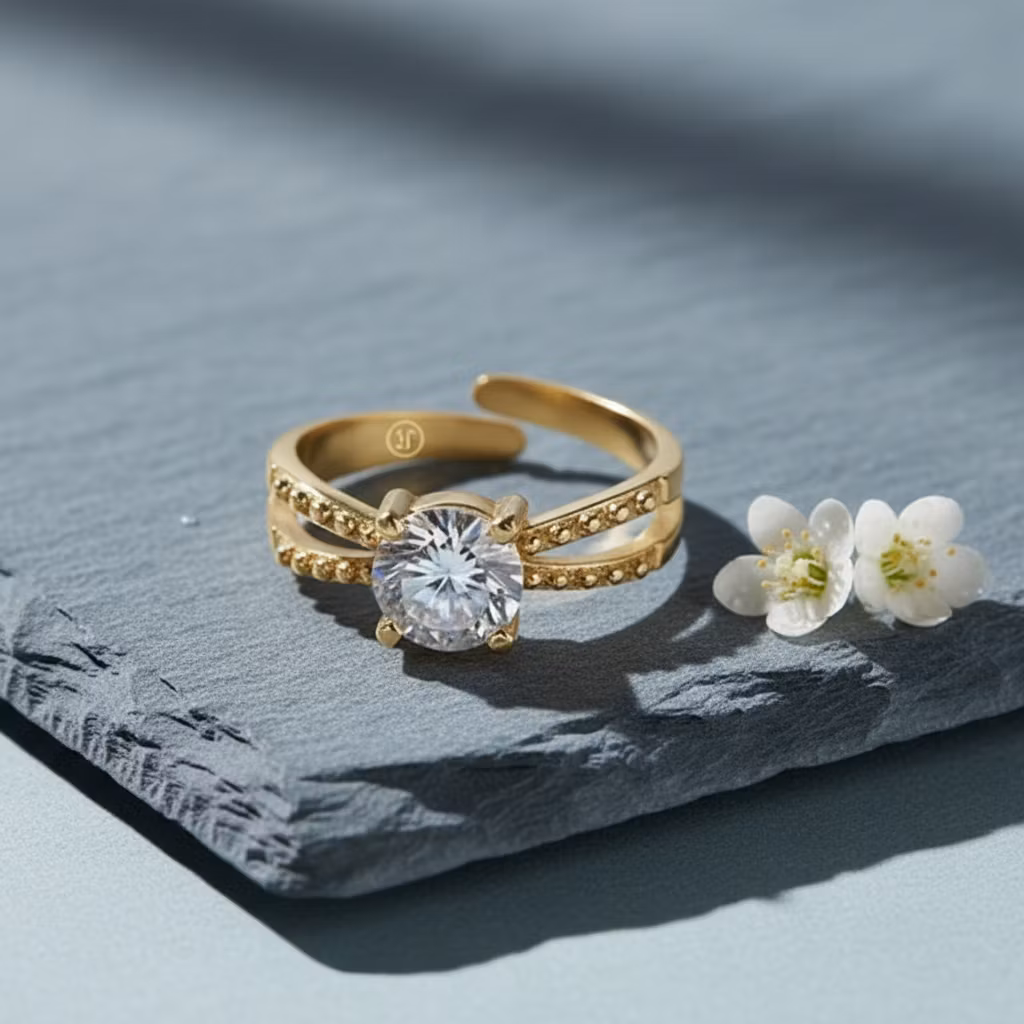 ✨ Justerbar Gullring med Glitrende Stein & Detaljert Bånd