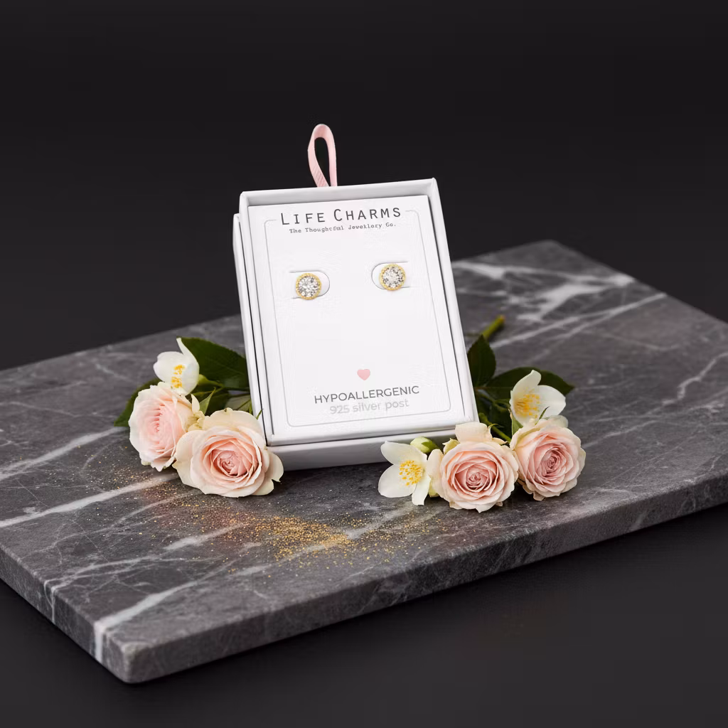 ´Life Charms - Crystal Gullbelagte Øredobber 199,- På lager Legg i handlekurv Del Informasjon Elegante sølvbelagte øredobber med cz-steiner.Øredobber mål: 15 mm diameterHypoallergenisk.