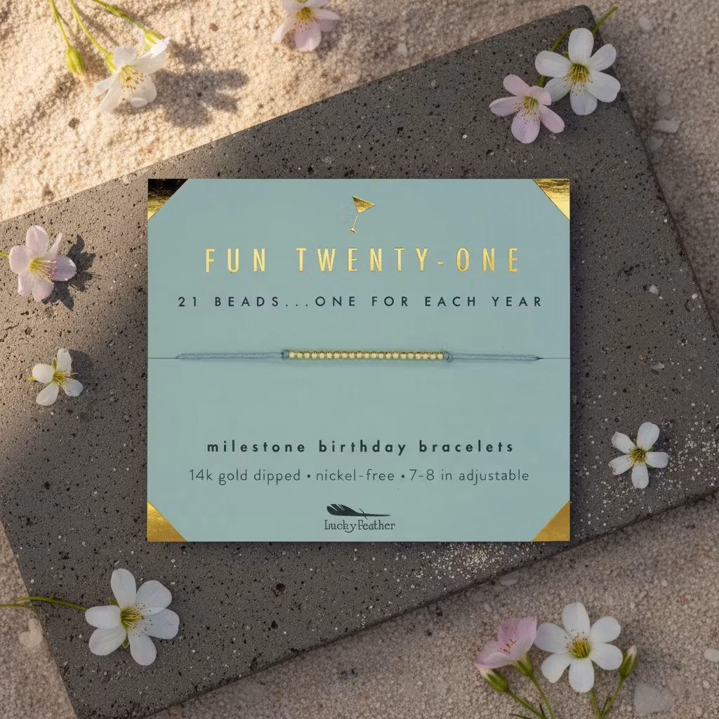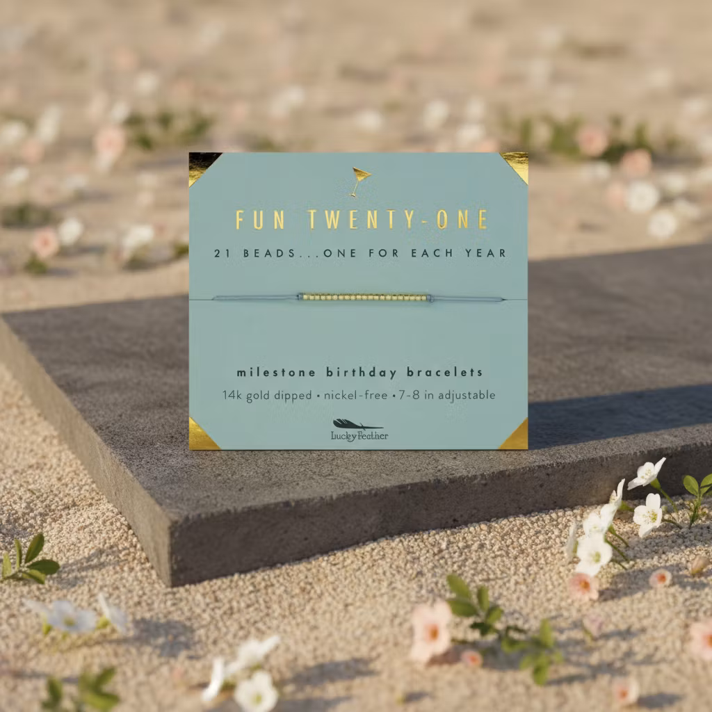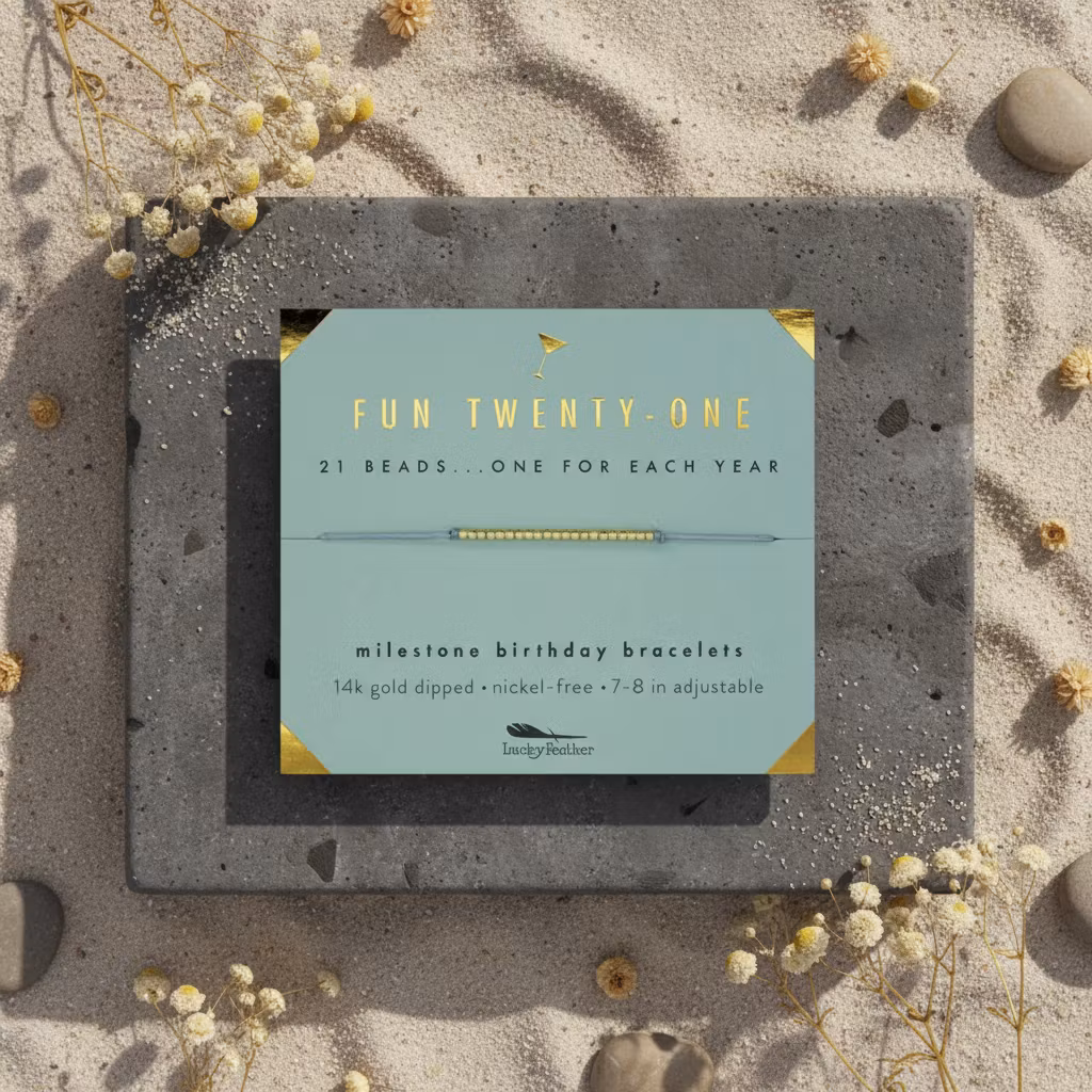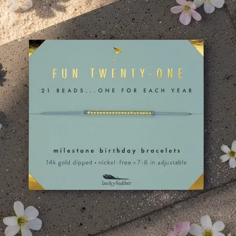 Armbåndet har 21 gullbelagte beads, én for hvert bemerkelsesverdige år av livet.