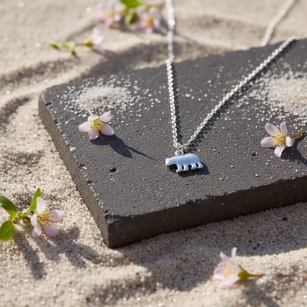 Et nydelig sølvbelagt kjede med et delikat bjørneanheng – den perfekte gaven til en fantastisk mamma.