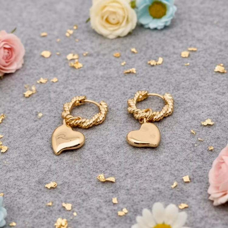 Twistet Heart Huggies 199,- På lager Legg i handlekurv Del Informasjon Stilige hoops - 18k gullbelagt rustfritt stå.